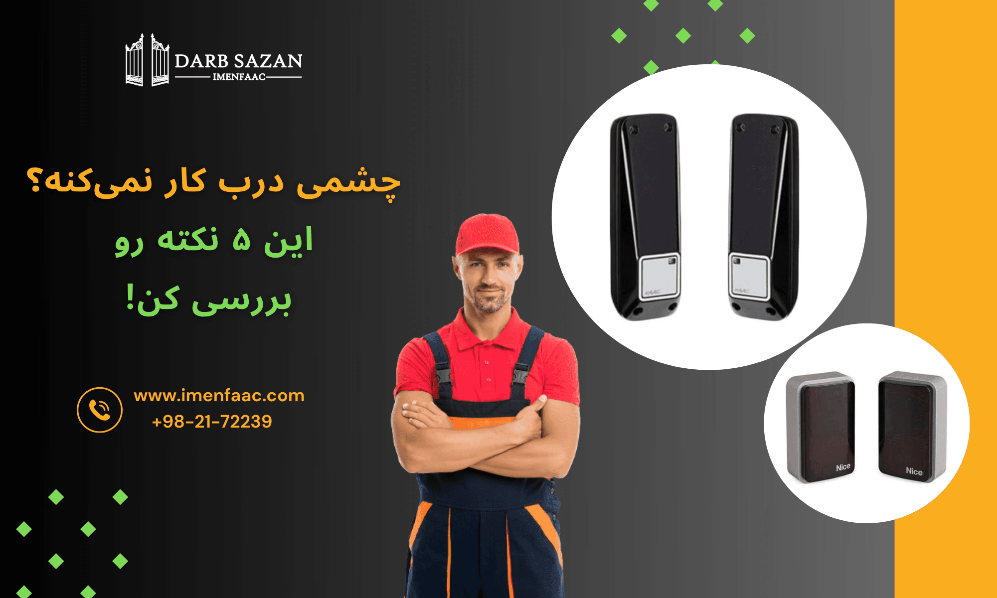در این مقاله، به بررسی ۵ علت رایج برای کار نکردن چشمی می‌پردازیم و راهکارهایی برای تعمیر چشمی درب و تعمیر فتوسل درب ارائه می‌کنیم تا بتوانید سریع‌تر مشکل را حل کنید.