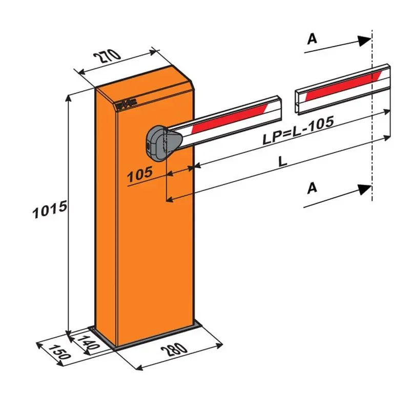 در بخش اصلی دستگاه، کابین اصلی راهبند و کاور فلزی قرار دارد. این بخش شامل موتور، گیربکس، مرکز کنترل و اجزای مکانیکی داخلی است. بدنه ی آلومینیومی و رنگ الکترواستاتیک آن باعث مقاومت بالا در برابر زنگ زدگی، اشعه خورشید و تغییرات دمایی می شود. طراحی این کابین به گونه ای است که علاوه بر دوام طولانی مدت، ظاهری زیبا و حرفه ای نیز به محیط پارکینگ می بخشد.