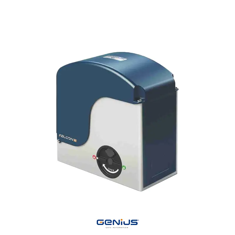 جک ریلی درب پارکینگ جنیوس GENIUS FALCON 20 یکی از قدرتمندترین اپراتورهای ریلی برند معتبر ایتالیایی Genius (زیرمجموعه شرکت FAAC) است که برای درب های کشویی اماکن مسکونی و نیمه صنعتی طراحی شده است. این موتور با ساختار الکترومکانیکی دقیق و بدنه ای از آلومینیوم مقاوم با پوشش پلی استر درون محفظه ABS، دوام و ایمنی بالایی را در محیط های بیرونی تضمین می کند. فالکون 20 با بهره گیری از لیمیت سوییچ مغناطیسی، عملکردی نرم و دقیق دارد و به لطف موتور قدرتمند با سرعت چرخش ۱۴۰۰ دور در دقیقه می تواند درب هایی تا وزن ۲٬۰۰۰ کیلوگرم را با سرعتی در حدود ۱۰ متر در دقیقه به آسانی جابجا کند.